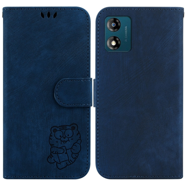 Funda de Cuero para Motorola Moto E13 Little Tiger en Relieve (Azul Oscuro)