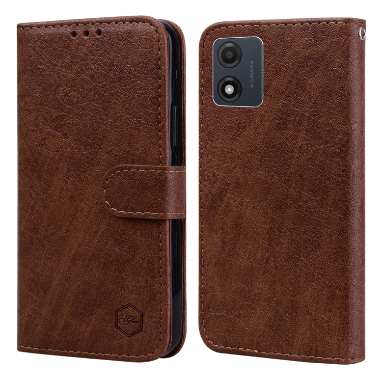 Funda para Motorola Moto E13 Sensación de Piel Textura Cuero Aceitoso PU + TPU (Marrón)