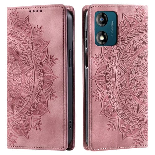Funda de Cuero Magnética para Motorola Moto E13 Totem con Relieve (Oro Rosa)