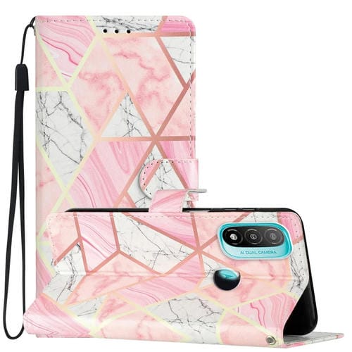 - 1x Estuche para Motorola Moto E20 E30 E40 de Cuero con Dibujo Coloreado Mármol Rosa