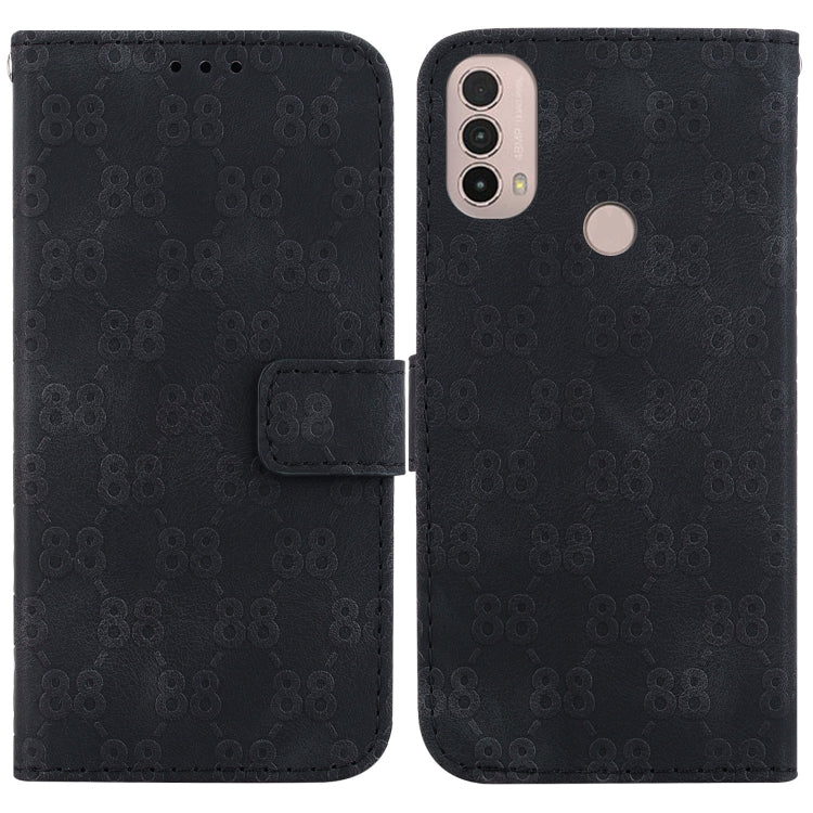 Estuche para Motorola Moto E20 E30 E40 de Cuero en Relieve con Doble Forma de 8 (Negro)
