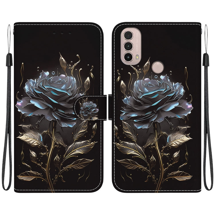 Funda para Motorola Moto E20 E30 E40 de Cuero con Dibujo y Textura de Cristal (Rosa Negra)