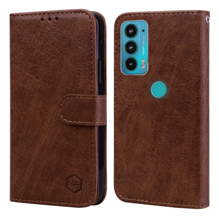 Funda para Motorola Moto E20 E30 E40 PU + TPU Textura de Cuero Aceitoso (Marrón)