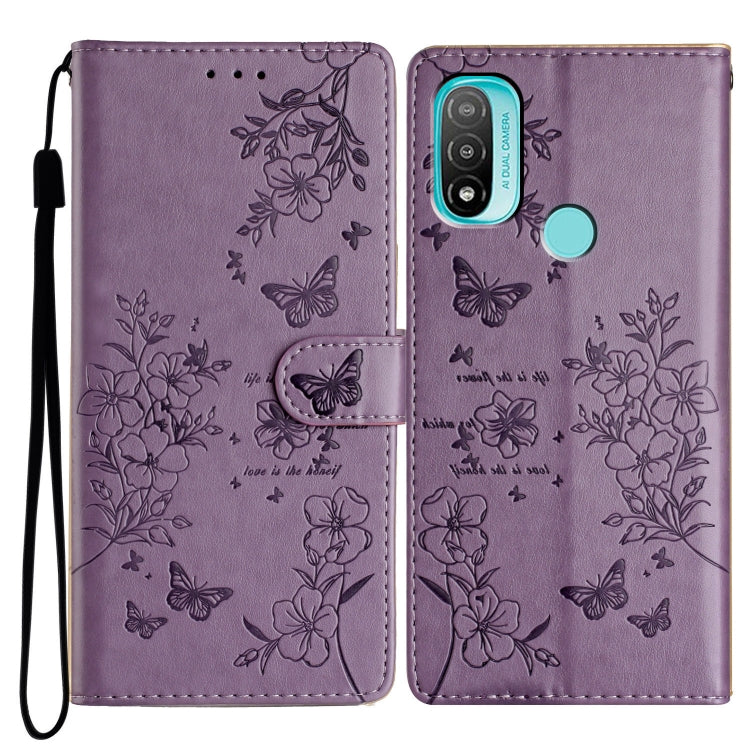 Funda de Cuero para Motorola Moto E20 / E30 con Mariposas y Flores (Púrpura)