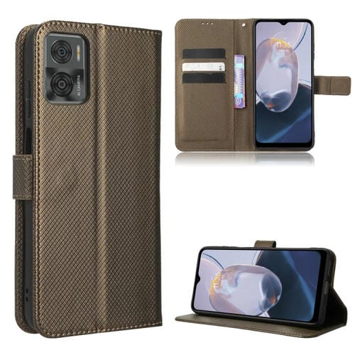 Funda de Cuero para Motorola Moto E22 / E22I con Textura de Diamante (Marrón)