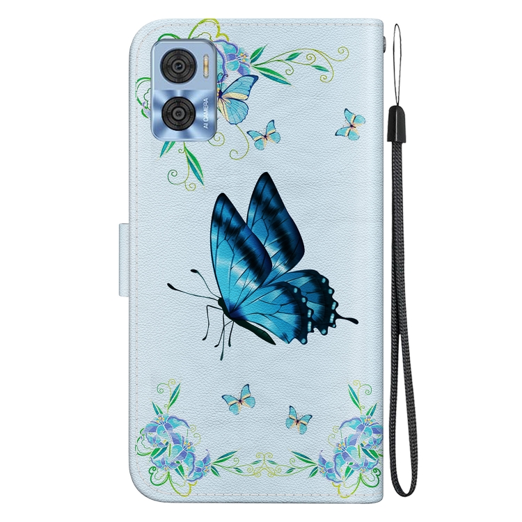 Funda para Motorola Moto E22 / E22I de Cuero con Dibujo Coloreado y Textura de Cristal (Pensamientos Azules)