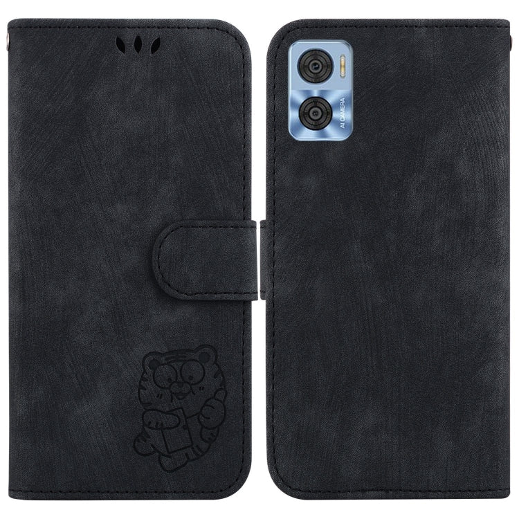 Funda para Motorola Moto E22 / E22I de Cuero con Relieve Little Tiger (Negro)