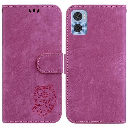For Motorola Moto E22 / E22i Little Tiger Embossed Leather Phone Case(Rose Red)