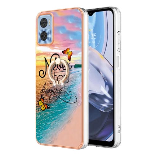 Funda TPU Galvanoplastia IMD con Anillo para Motorola Moto E22 / E22I (Dream Butterfly)