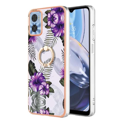- 1x Funda TPU con Anillo para Motorola Moto E22 / E22I Galvanoplastia IMD (Flor Púrpura)
