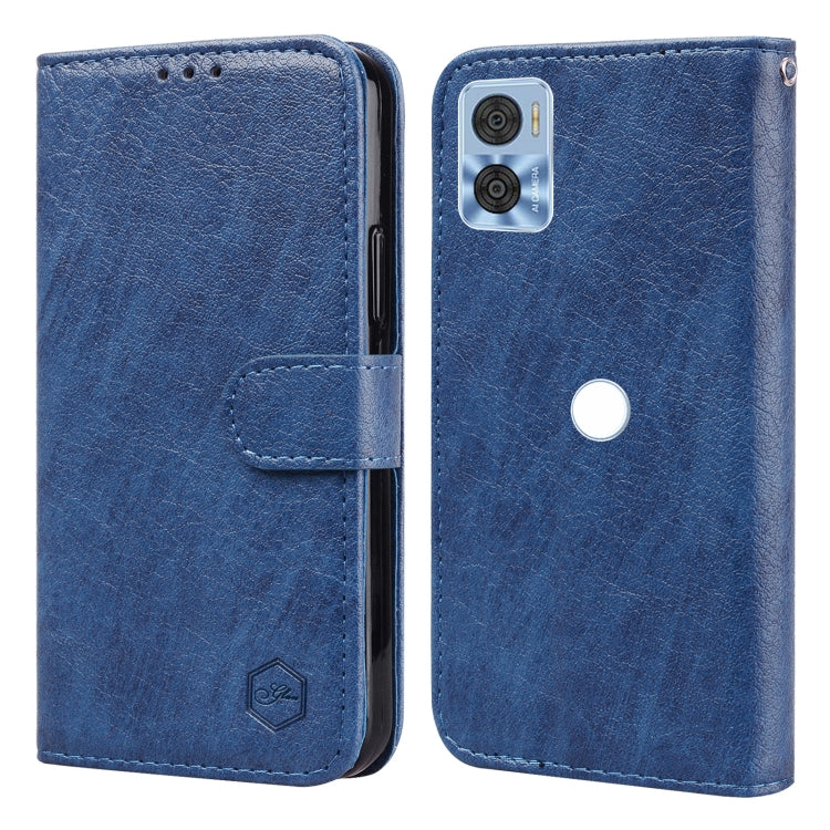 Funda para Motorola Moto E22 / E22I PU + TPU textura cuero aceitoso (Azul Oscuro)