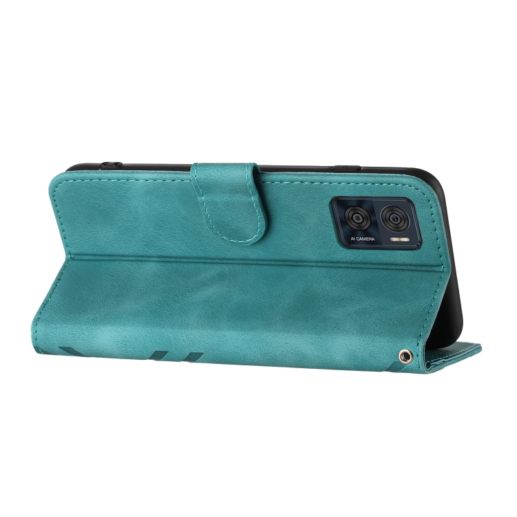 Funda de Cuero para Motorola Moto E22 Line Pattern Skin Feel (Azul Claro)
