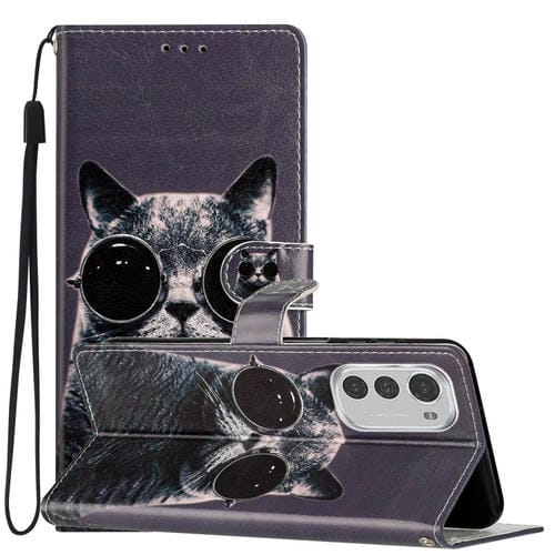 - 1x Estuche de Cuero para Motorola Moto E32 con Dibujo Coloreado Gafas de Sol Cat