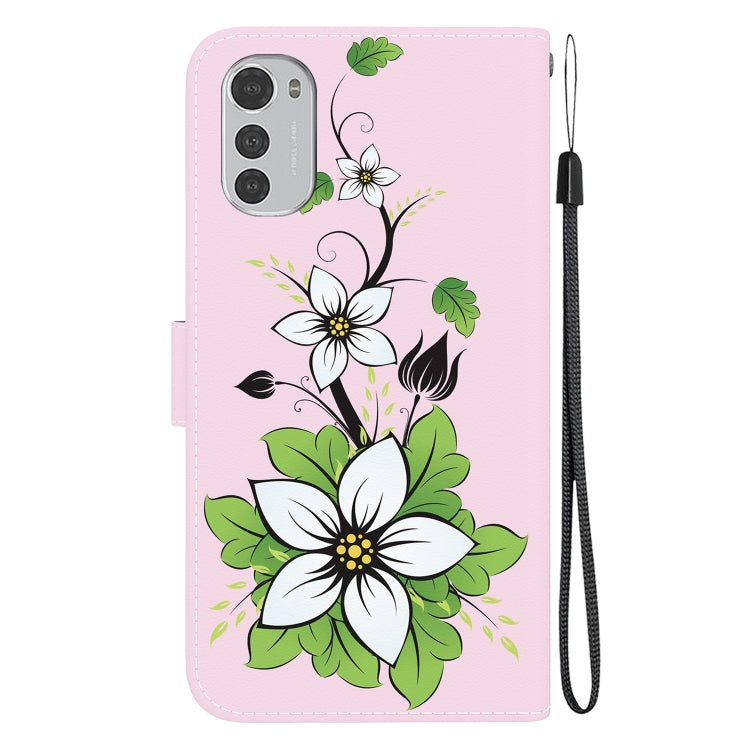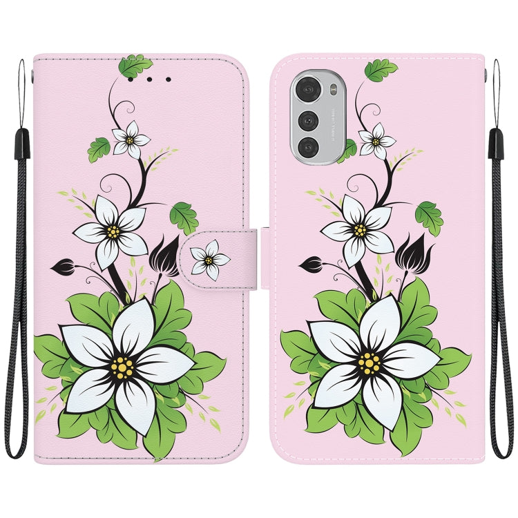 Funda de Cuero para Motorola Moto E32 con Dibujo Coloreado y Textura de Cristal (Lirio)