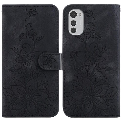 Funda de Teléfono Motorola Moto E32 Lily Cuero en Relieve (Negro)