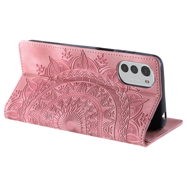Funda de Cuero Magnética para Motorola Moto E32 Totem en Relieve (Oro Rosa)