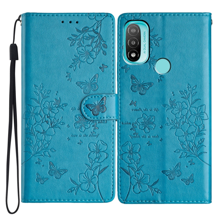 Funda de Cuero para Motorola Moto E40 con Mariposas y Flores (Azul)