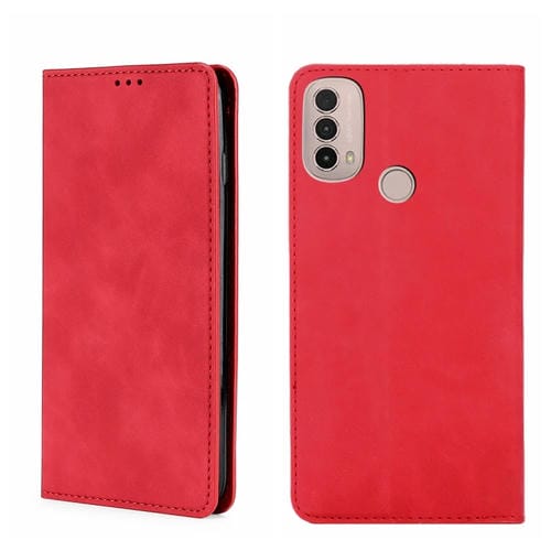Funda para Motorola Moto E40 Skin Feel Magnética Flip Horizontal de Cuero (Rojo)