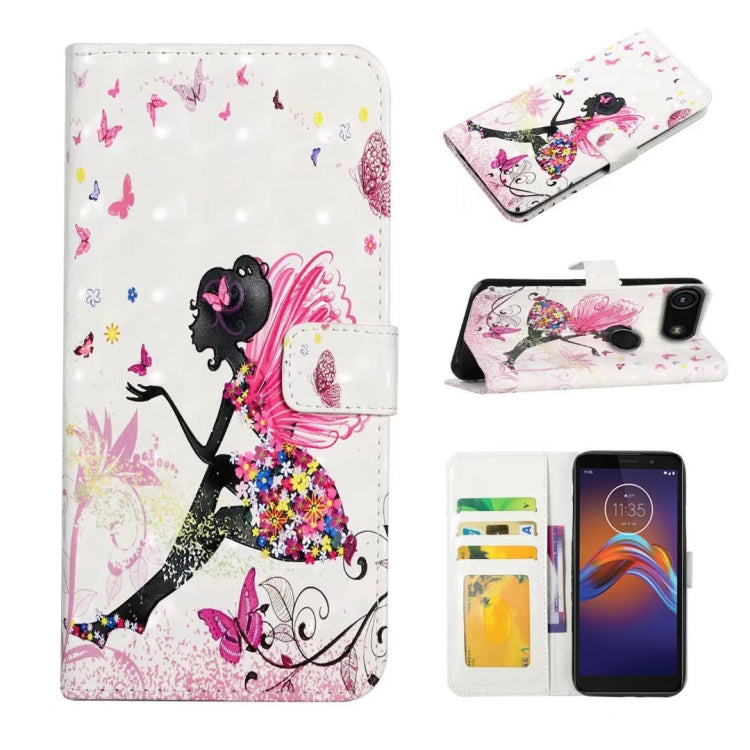 Funda de Cuero para Motorola Moto E6 Play con Dibujo 3D en Relieve al Óleo (Hada de Flores)
