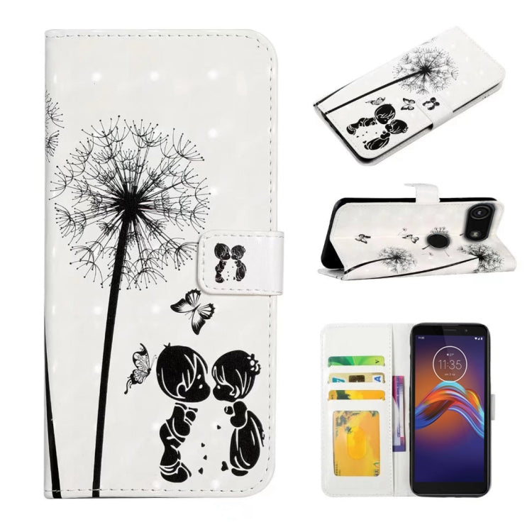 Funda de Cuero para Motorola Moto E6 Play con Dibujo 3D en Relieve al Óleo (Pareja de Diente de León)