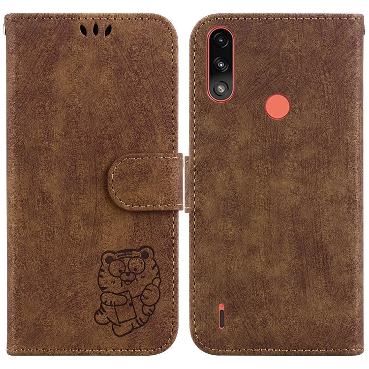 Funda para Motorola Moto E7 Power / E7I Power de Cuero con Relieve Little Tiger (Marrón)