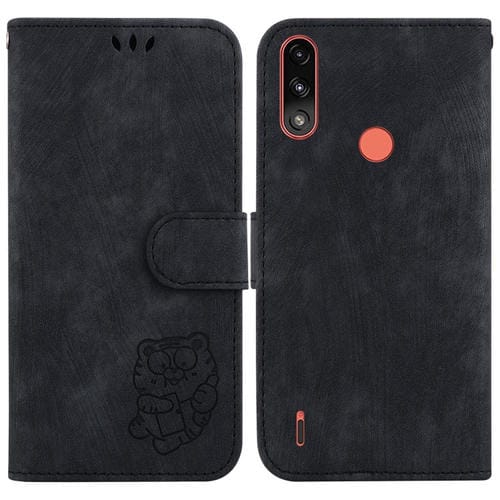For Motorola Moto E7 Power / E7i Power Little Tiger Embossed Leather Phone Case (Black)