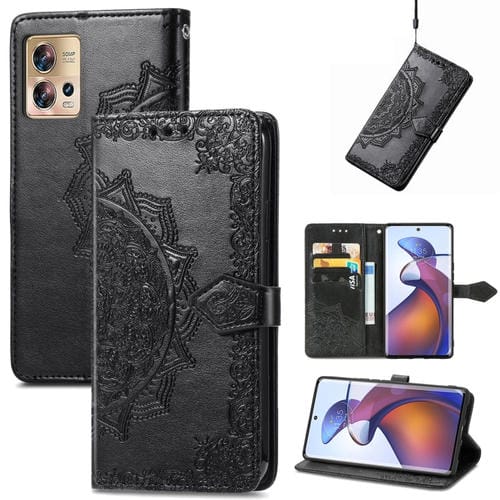 Funda de Cuero en Relieve Mandala Flower para Motorola Moto Edge 30 Fusion (Negro)