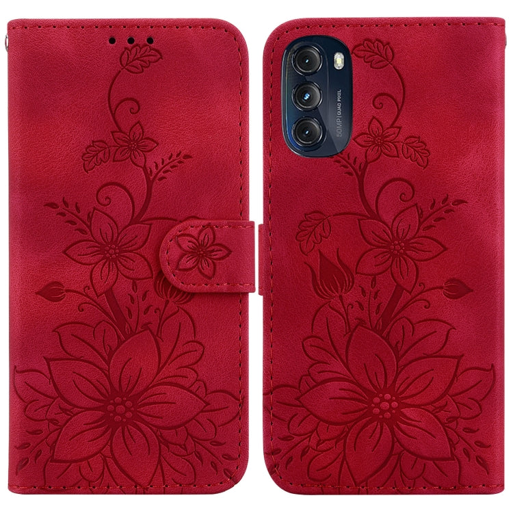 Funda de Cuero con Relieve Lily para Motorola Moto G 2022 (Rojo)