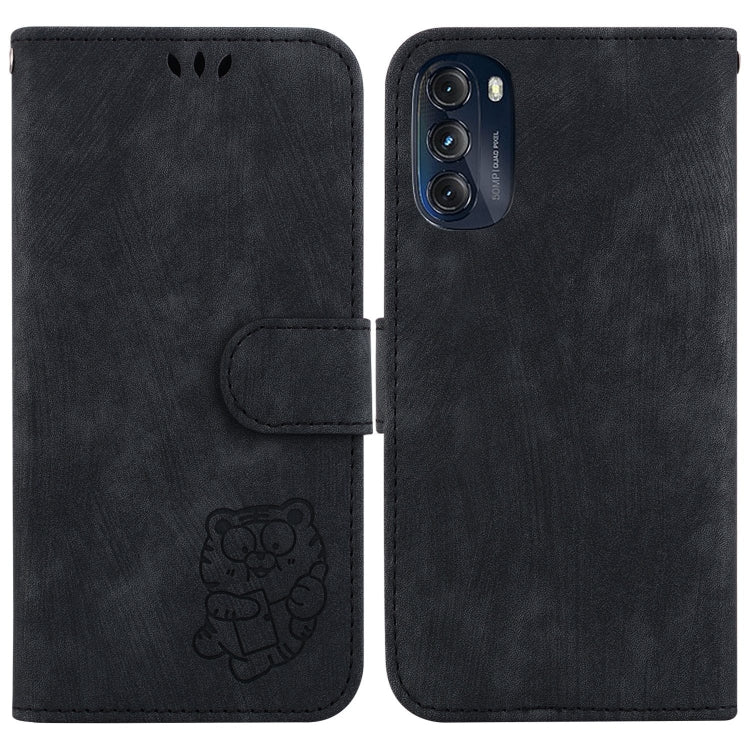 Funda de Cuero con Relieve Little Tiger para Motorola Moto G 2022 (Negro)