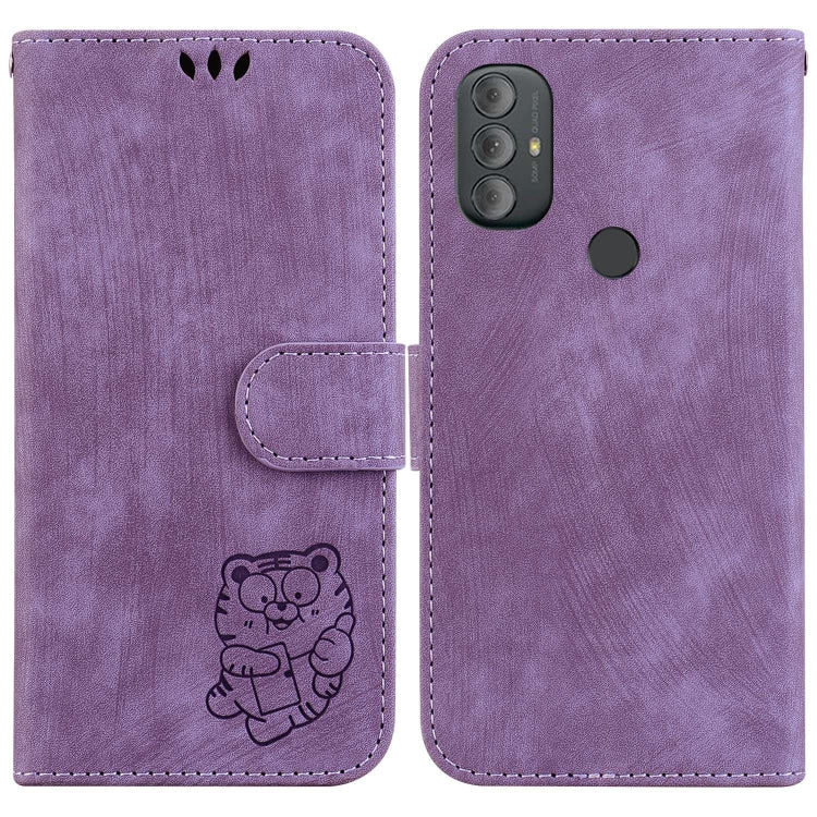 Funda de Cuero con Relieve Little Tiger para Motorola Moto G Power 2022 (Púrpura)
