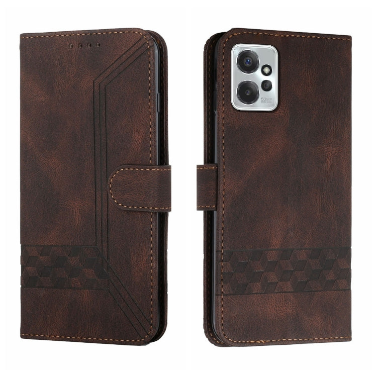 Funda de Cuero con Tapa para Motorola Moto G Power 2023 Cubic Skin Feel (Marrón)