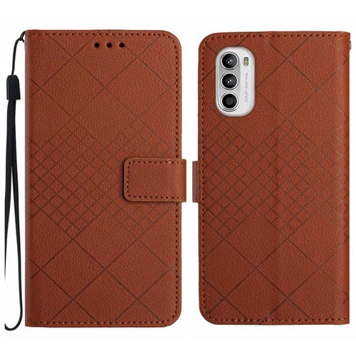 - 1x Funda de Cuero Motorola Moto G Stylus 5G (2022) con Textura de Rejilla Rómbica (Marrón)