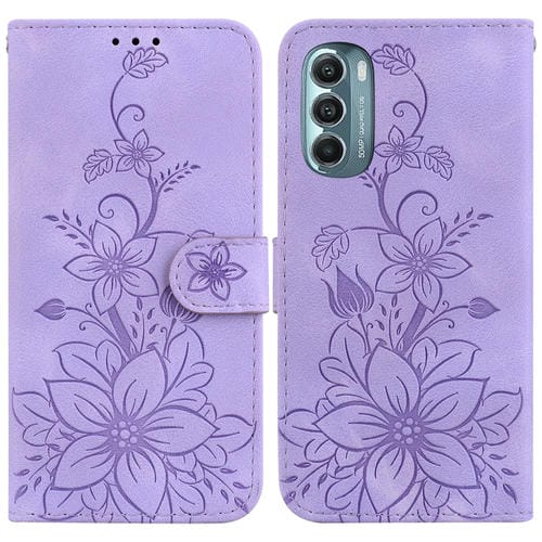 Funda para Motorola Moto G Stylus 5G 2022 de Cuero con Relieve Lily (Púrpura)