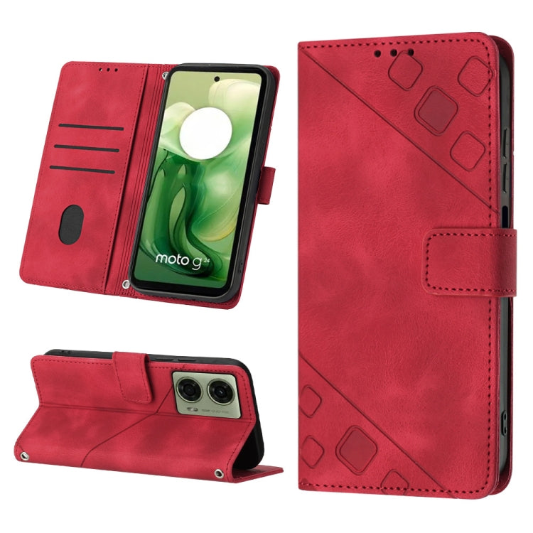 Funda para Motorola Moto G04 4G y G24 4G de Cuero con Relieve y Sensación de Piel (Rojo)