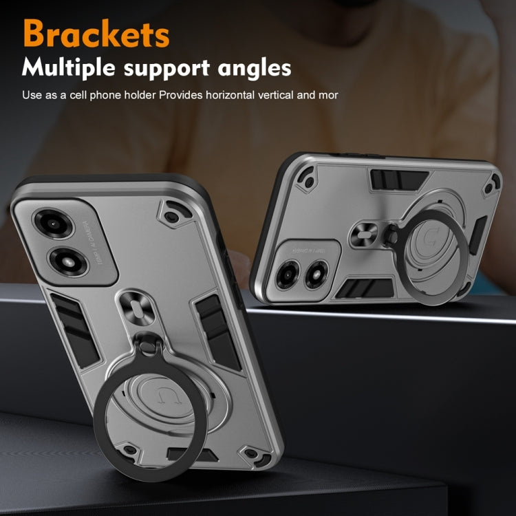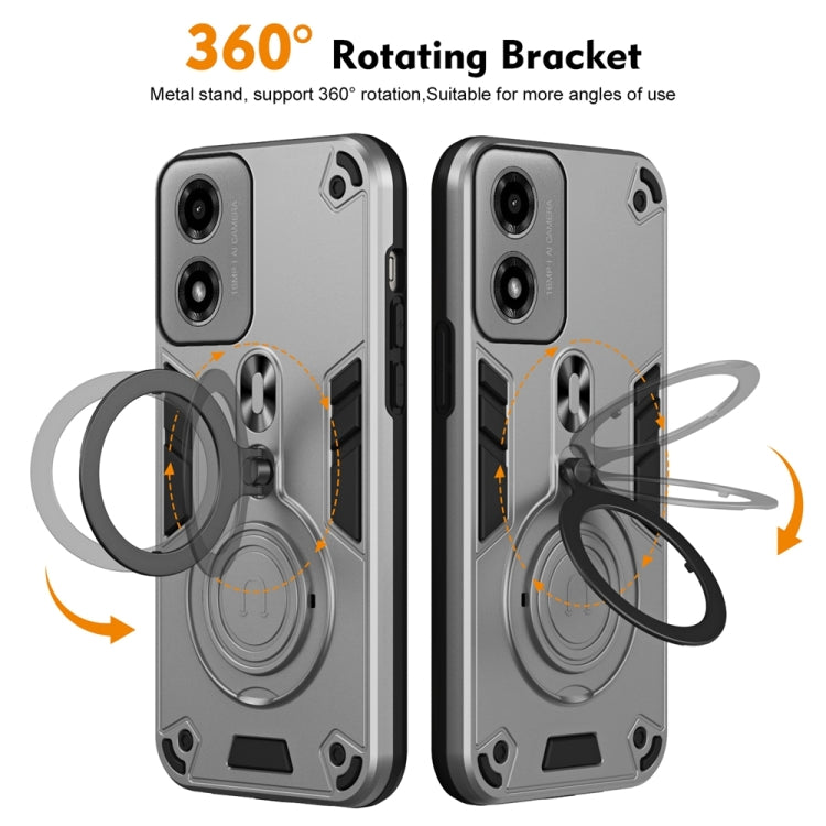 Estuche híbrido para Motorola Moto G04 y G24 con anillo de metal soporte giratorio 360 grados (Gris Plateado)
