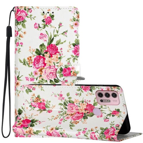 - 1x Estuche para Teléfono Motorola Moto G10 / G30 de Cuero con Dibujo a Color (Peonías)