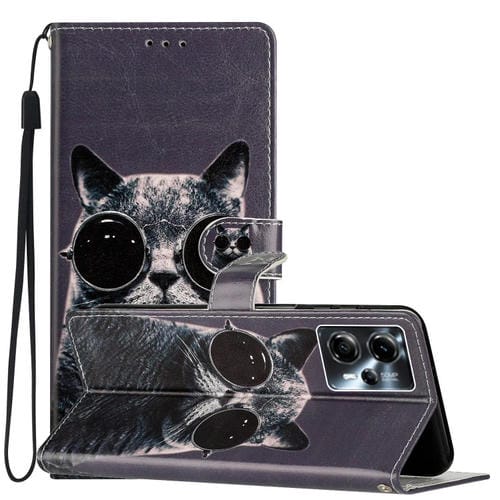 Estuche para Motorola Moto G13 G23 G53 de Cuero con Dibujo Coloreado Gafas de Sol Cat