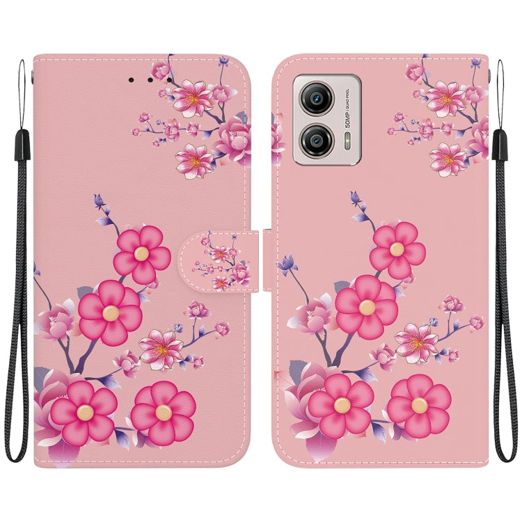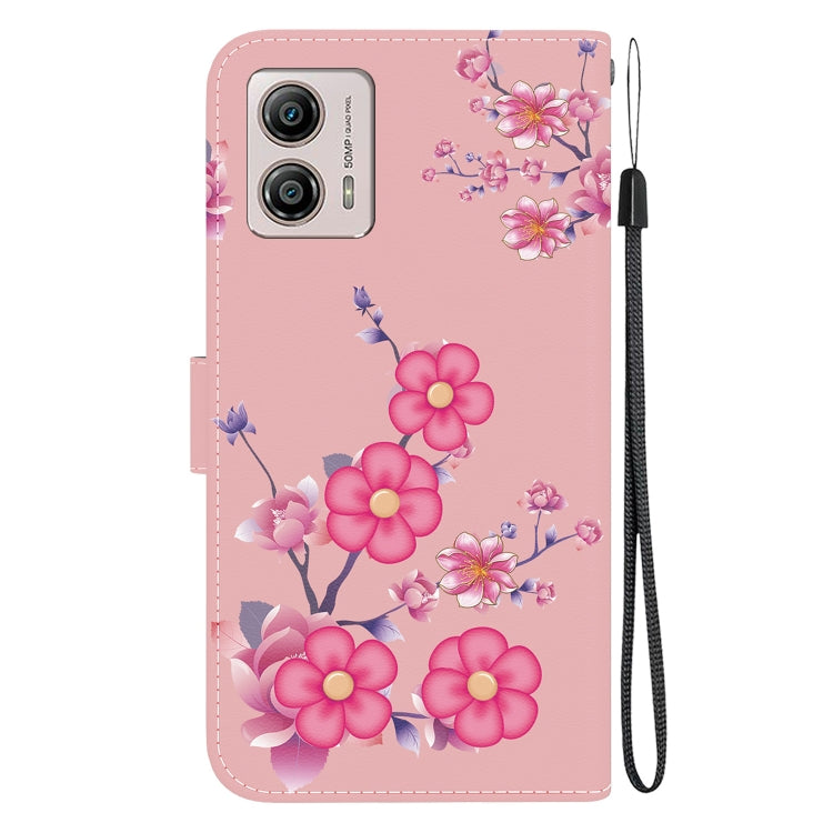 Funda de Cuero para Motorola Moto G13 / G23 / G53 con Dibujo Coloreado y Textura de Cristal (Flores de Cerezo)