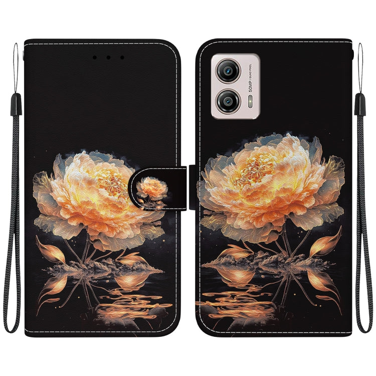 Funda para Motorola Moto G13 G23 G53 de Cuero con Dibujo y Textura de Cristal (Peonía Dorada)