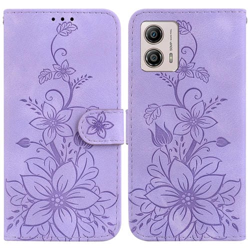 For Motorola Moto G13/G23/G53 Lily Embossed Leather Phone Case(Purple)