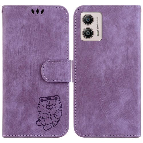 Funda para Motorola Moto G13 / G23 / G53 de Cuero con Relieve Little Tiger (Púrpura)
