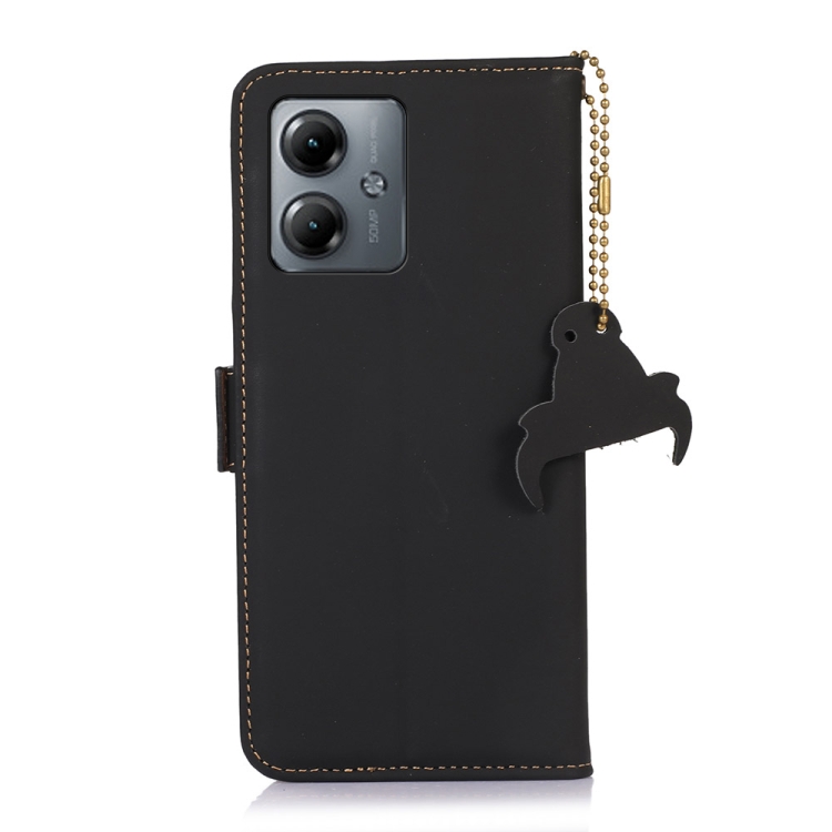 Funda de Cuero Genuino Magnética Rfid para Motorola Moto G14 4G (Negro)