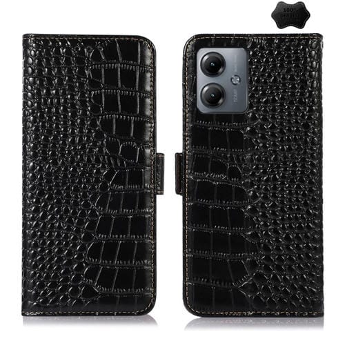 Funda para Motorola Moto G14 4G de Piel de Vaca con Capa Superior de Cocodrilo (Negro)