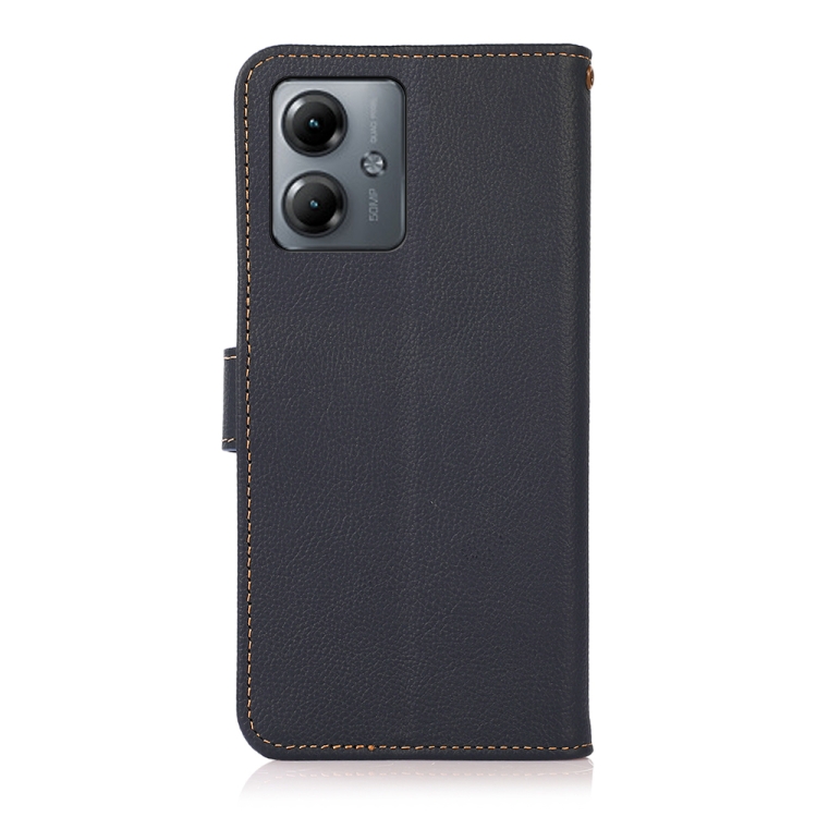 Funda para Motorola Moto G14 4G Khazneh Custer Cuero Genuino con Rfid (Azul)