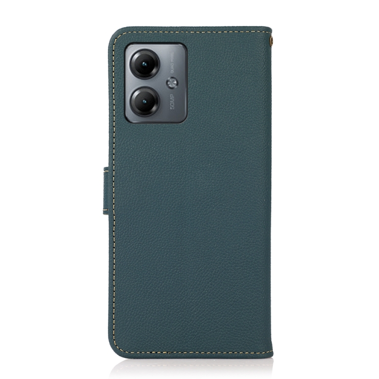 Funda para Teléfono Motorola Moto G14 4G Khazneh Custer Cuero Genuino Rfid (Verde)