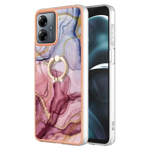 Estuche para Motorola Moto G14 Imd Doble Cara Mármol Galvanizado con Anillo (Rose Red)