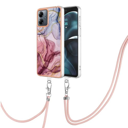 Estuche para Motorola Moto G14 Imd Doble Cara Mármol Galvanizado con Cordón (Rose Red)