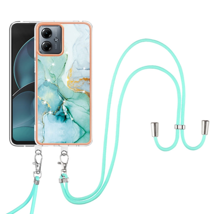 Estuche para Motorola Moto G14 Imd Doble Cara Mármol Galvanizado con Cordón (Verde)