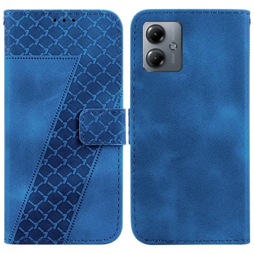 Funda de Cuero para Motorola Moto G14 con Relieve en Forma de 7 (Azul)