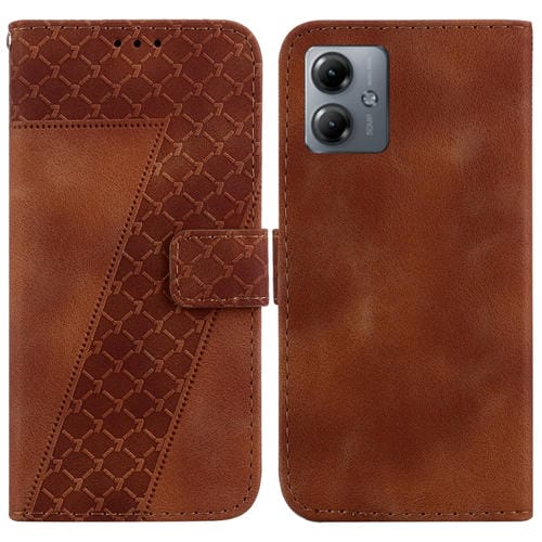 Funda de Cuero para Motorola Moto G14 con Relieve en Forma de 7 (Marrón)